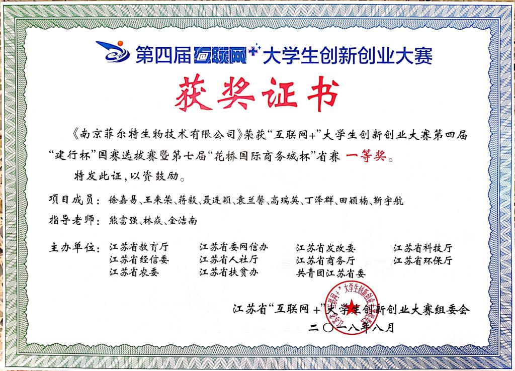 徐嘉易等获互联网+大学生创新创业省赛一等奖