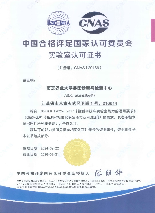 beat365唯一官方网站兽医诊断与检测中心顺利获得CNAS认可资质